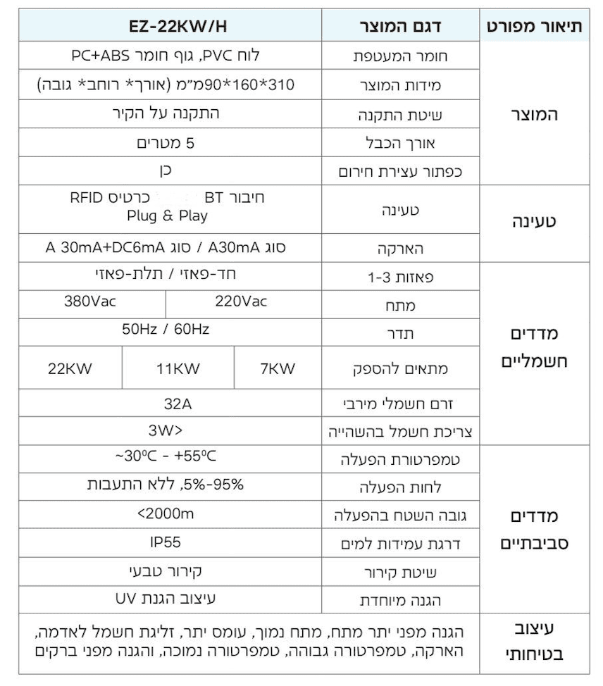 עמדת טעינה ביתית לרכב חשמלי הספק טעינה -KW22